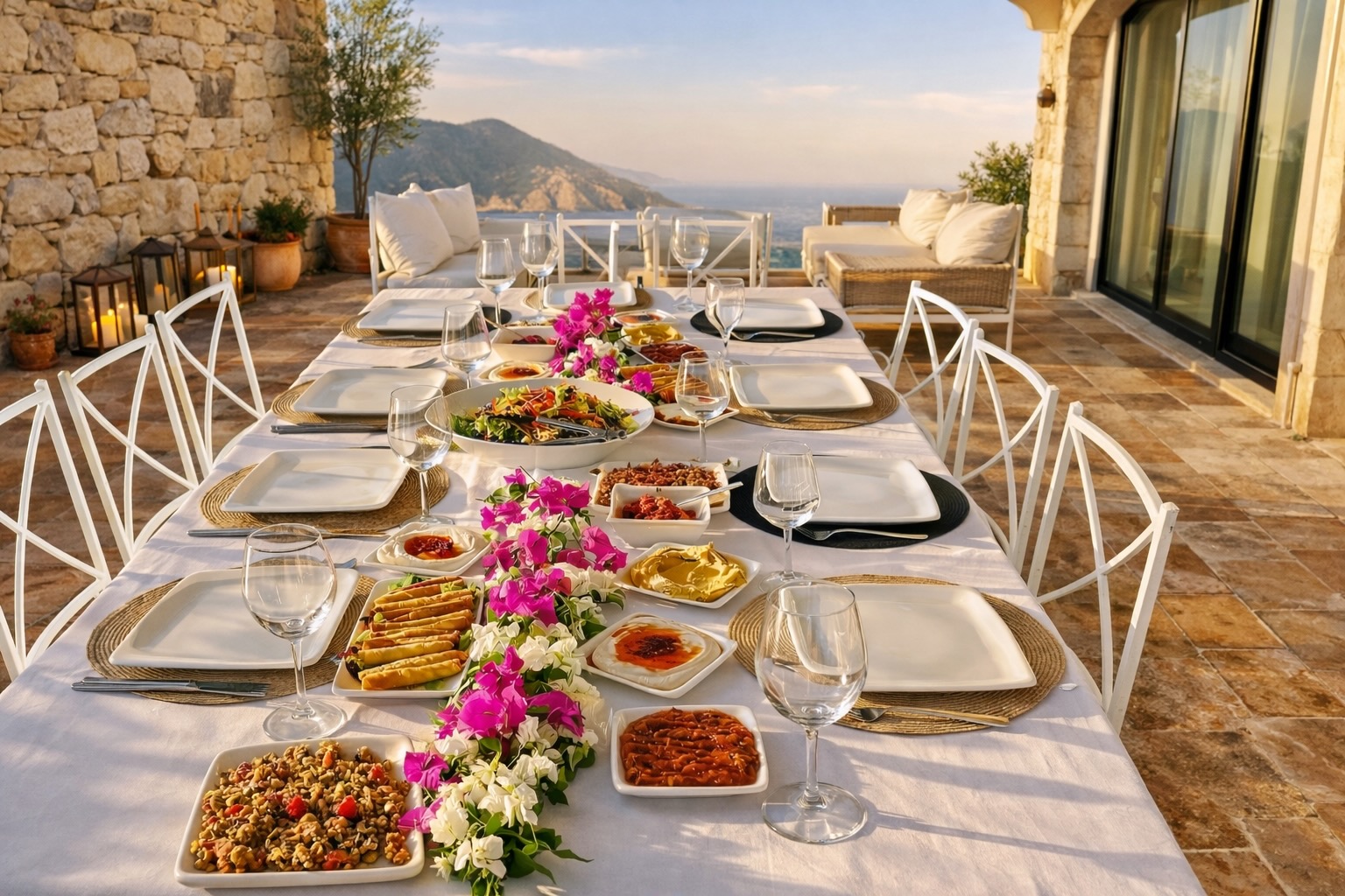 Shared tables, seasonal flavours and long Mediterranean evenings — private villa feasts designed to be remembered.